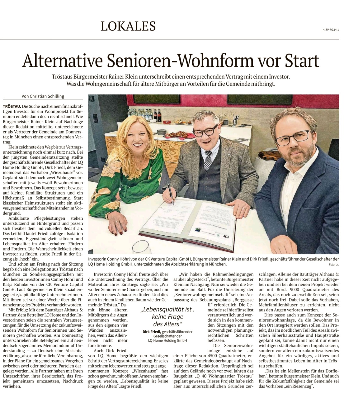 Wir freuen uns sehr, dass am 19.02.2026 die Kooperationsvereinbarung für ein modernes Wohn- und Betreuungsprojekt für Seniorinnen und Senioren in der Gemeinde Tröstau unterzeichnet wurde.